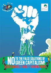 Also within the rubric of the Green Economy, corporations are seeking new technological ‘False Solutions’ to the climate and other environmental crises, including dirty forms of ‘clean energy’ (nuclear, so-called ‘clean coal’, fracking ‘natural gas’, hydropower, hydrogen, biofuels, biomass and biochar); dangerous Carbon Capture and Storage experiments; and other whacky geoengineering gimmicks such as Genetically Modified trees to sequester carbon, sulfates in the air to shut out the sun, iron filings in the sea to create algae blooms, and large-scale solar reflection such as industrial-scale plastic-wrap for deserts.