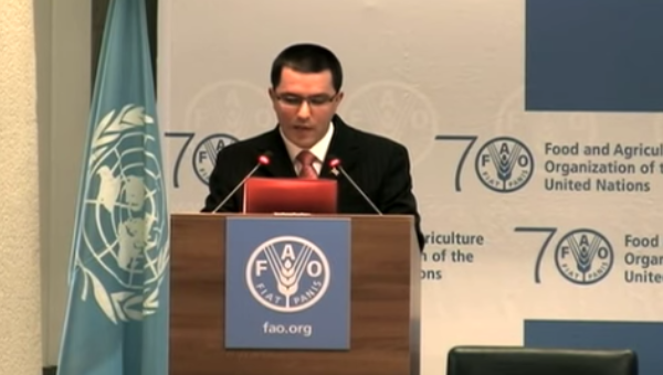 Venezuelan Vice President Jorge Arreaza urged the international community to speed up the fight against hunger, as World leaders gather Monday at the biannual conference of United Nations Food and Agriculture Organization. Representatives from some 190 countries, including 130 ministers, 12 heads of state are in Rome for the FAO session, which will run until June 13. According to Venezuela’s vice president, the socialist government has invested US$142 billion dollars in food programs over the last 10 years, resulting a drop in malnutrition to 5 percent for close to 14 percent in 1992.