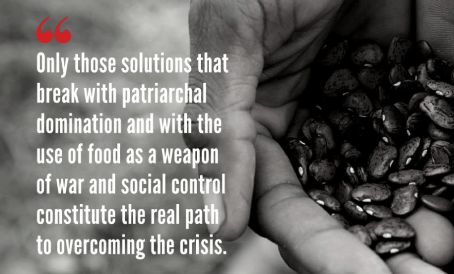 Both in the countryside and in the city, women have played the role of caregivers to the whole society. In the CLAP, in the networks of family producers, and in consumer organizations, women have assumed leadership roles. This has been one of the keys to Chavismo: women’s participation is central to popular organization. It also shows us the way patriarchy shapes the economic war: the concentration of wealth, together with smuggling and hoarding of food and other products of first necessity are expressions of patriarchal violence against the people who have benefited from Chavista social policies and are the most vulnerable ones in the current crisis. For that reason, only those solutions that break with patriarchal domination and with the use of food as a weapon of war and social control (not those that reproduce and strengthen such domination) constitute the real path to overcoming the crisis.