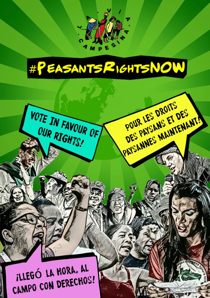 New York – October 26, 2018 – The “UN Declaration on the rights of peasants and other people working in rural areas” was presented in the UN headquarters to the Third Committee of the General Assembly on 25th October. This comes on the back of a nearly two decade long process of consultations and negotiations led by millions of peasants from La Vía Campesina, along with pastoralists, artisanal fisher folk, agricultural workers and indigenous peoples’ organizations, with the support of CETIM and FIAN International. The Declaration, if accepted can ensure that the rights of rural populations are better recognized and protected by the international community.