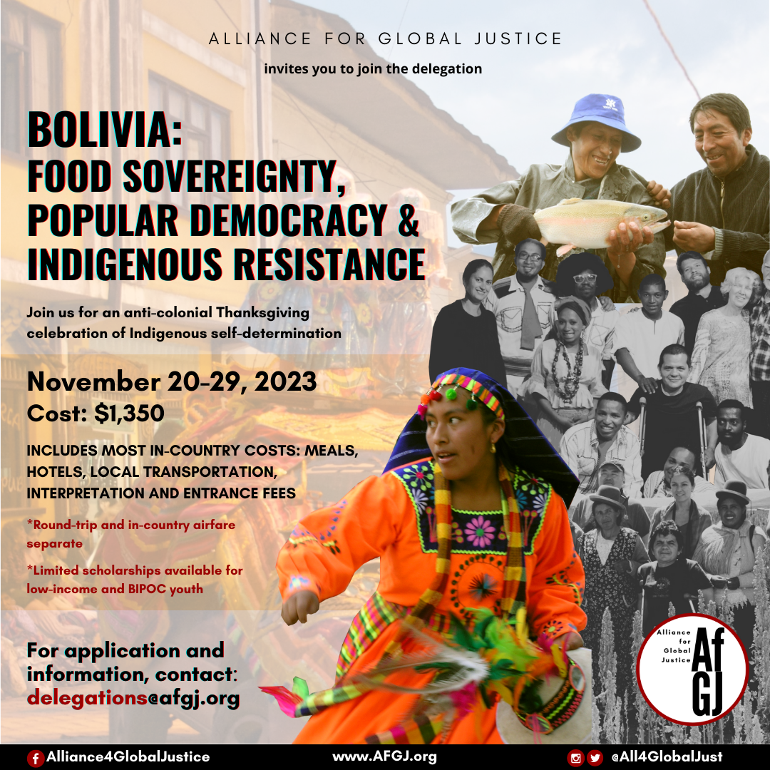 Learn about the Plurinational State of Bolivia’s Indigenous movements for sovereignty over food, land and water; gain an understanding of the spiritual and philosophical foundations of Pachamama; and discover the traditional ecological knowledge of the country’s peoples. Meet with farmers, community leaders, government officials and others. Experience the rich culture of the Andes and soak in the sights, sounds, people and politics during this historic moment for Bolivia’s popular democracy and Indigenous self-determination.